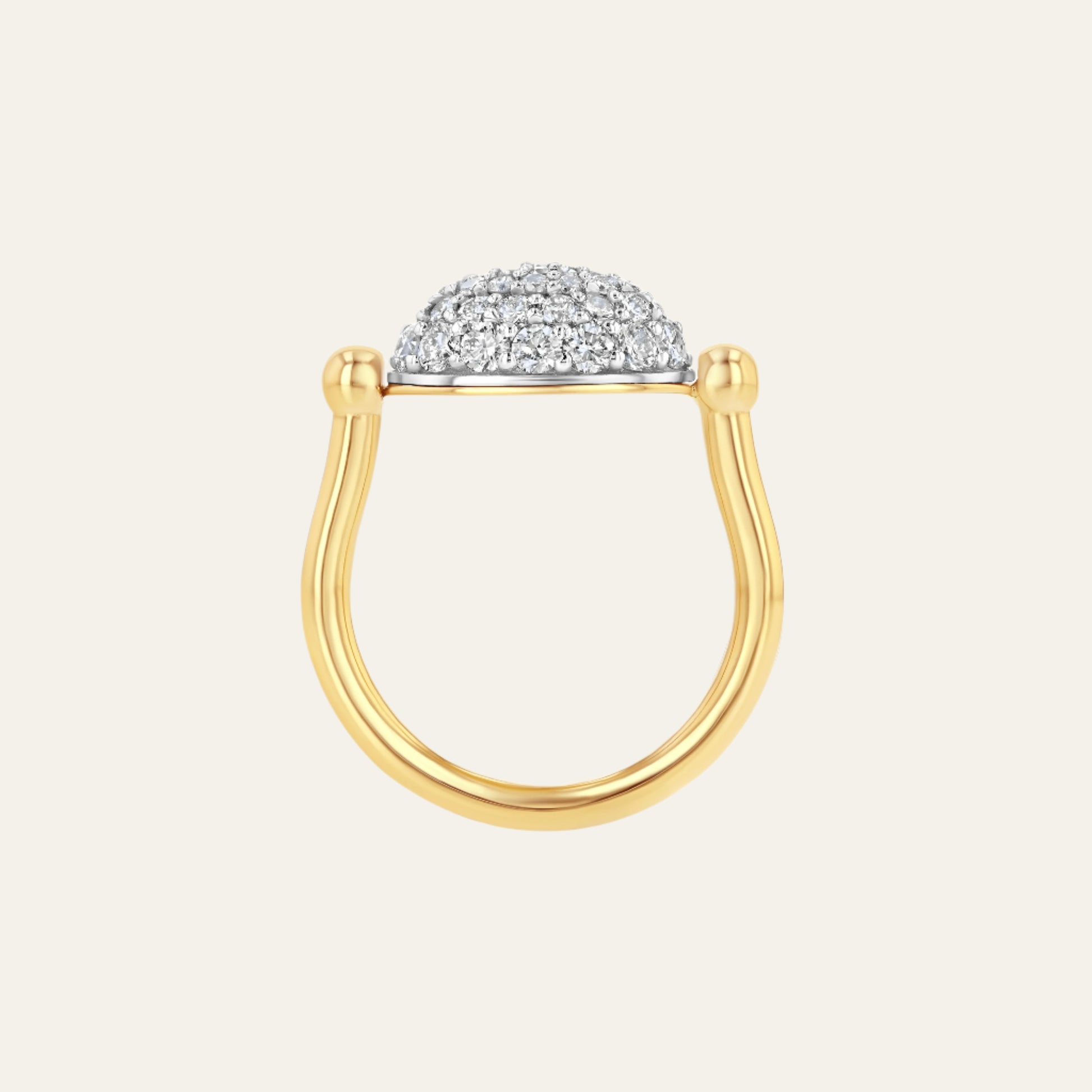 Inspired by a ring worn by a certain 90s style icon and her unforgettable ring, this piece captures her bold yet understated style. This ring says "I have style" without saying a word—whether you're dressed up or lounging in pajamas. Simple, chic, and effortlessly cool, it’s the perfect statement piece, even if it's the only piece of jewelry you own. Available in solid 14K Yellow, White, or Rose Gold with just under a carat of hand set natural diamonds!