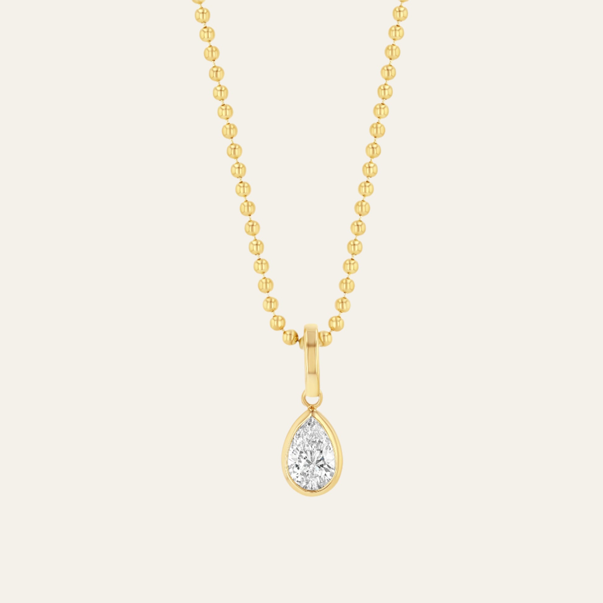 - Diamond: 0.5 carats, G-I color, SI1-VS2 clarity, pear-shaped bezel-set diamond